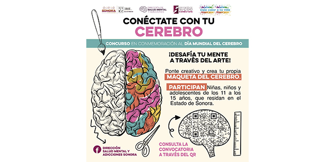 Hermosillo, Sonora; 17 de julio de 2025.- En el marco del Día Mundial del Cerebro, el Gobierno de Sonora, a través de la Secretaría de Salud (SSP), lanzó la convocatoria del concurso “Conéctate con tu cerebro”, dirigido a niñas, niños y adolescentes de entre 11 y 15 años, con el objetivo de fomentar la creatividad y el cuidado de la salud mental.