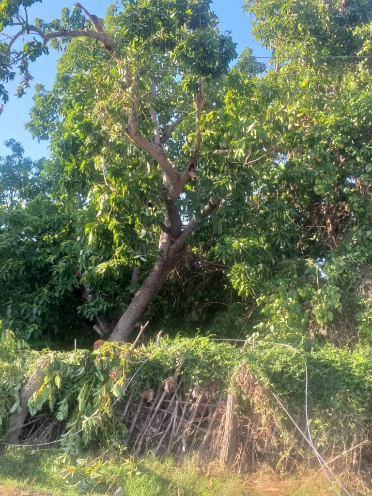 Navojoa, Sonora; ago. 21 de 2025.- Después de haber atendido la demanda de la tormenta de la semana pasada y al no poder solucionar por completo el problema del cableado que estaba sobre los árboles, y al haber dado la orden el personal de la CFE a los habitantes del lugar que ellos tenían que podar, y al intentar podar caen los brazos de un árbol de aguacate sobre los cables, produciendo una explosión en el transformador con el peligro de que los habitantes del ejido Burabampo sufran una lesión por descarga.