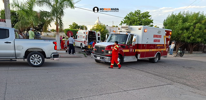 NAVOJOA, Sonora; agosto 1 de 2025 (NPN).- Un motociclista resultó lesionado la tarde de este viernes tras pasarse un alto y chocar contra una camioneta en la colonia Juárez.