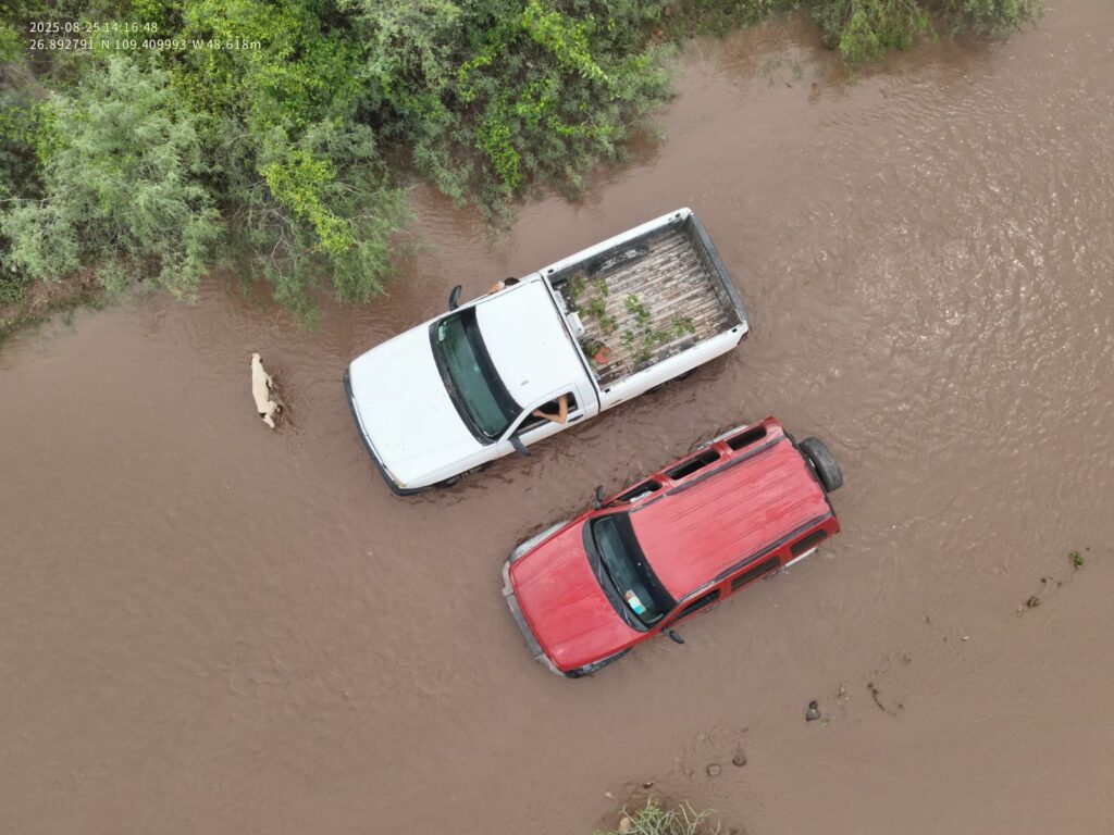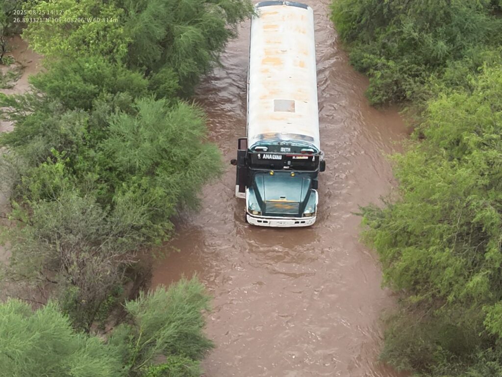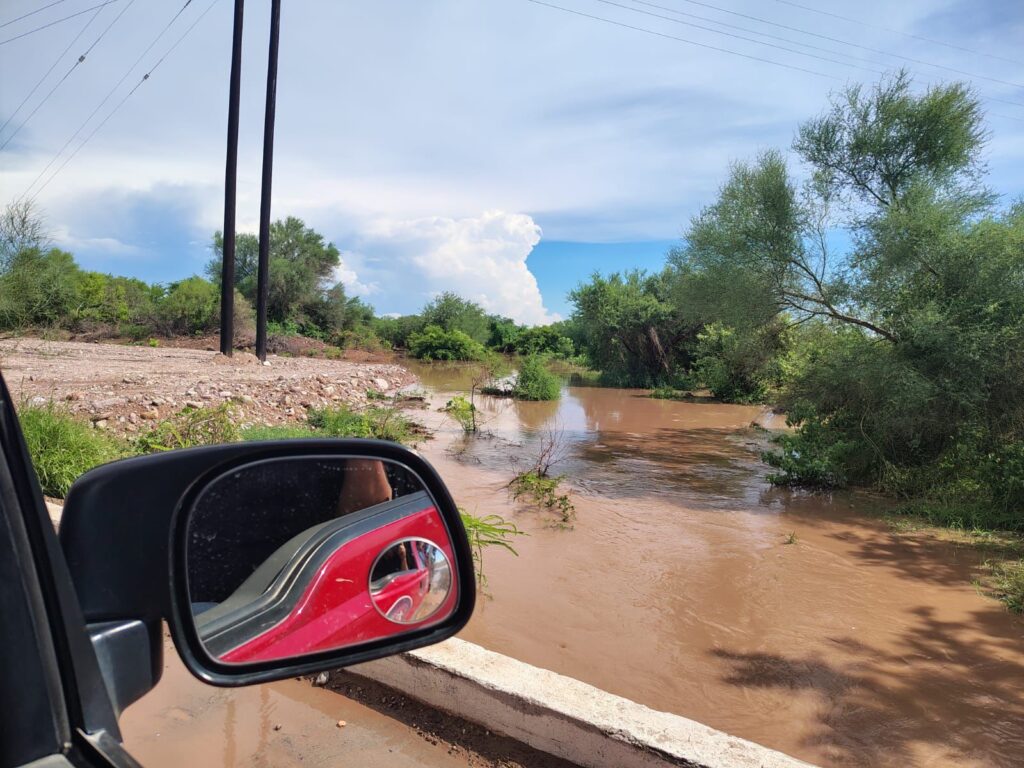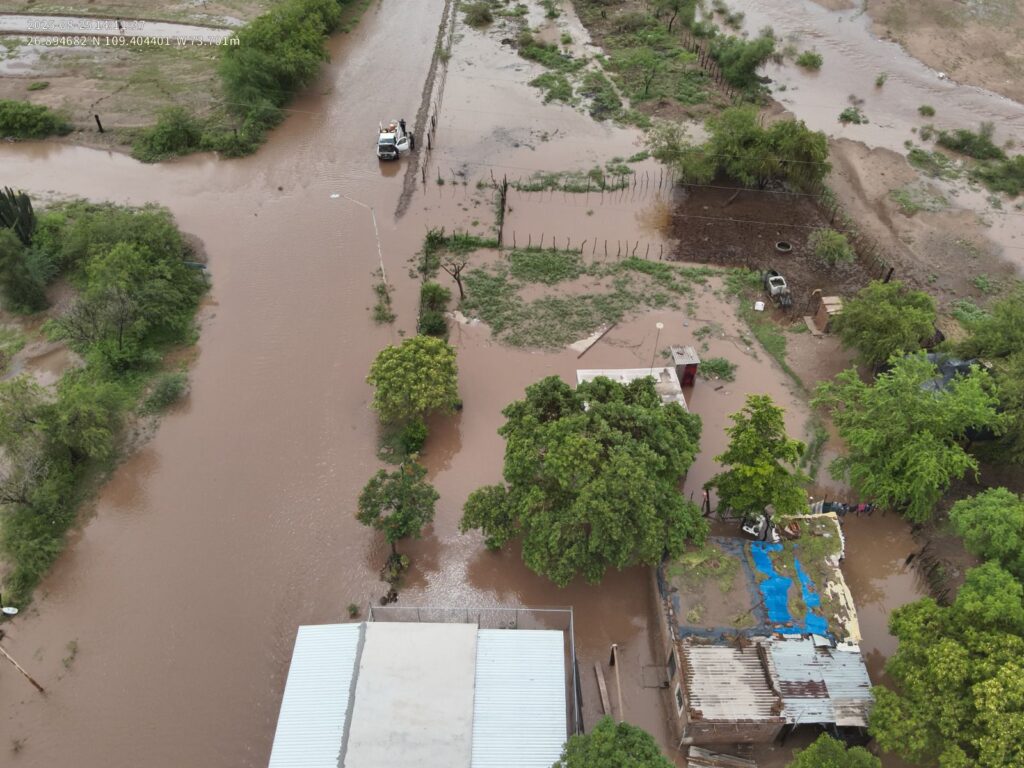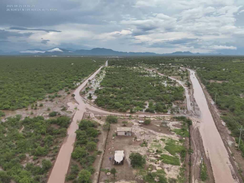 Navojoa, Sonora; ago. 25 de 2025 (NPN).- Hoy, se registraron  lluvias extraordinaria en la comisaría se Bacabachi y límites con Álamos, hay crecidas de arroyos en toda la comisaría. No hay  hasta el momento reporte de personas lesionadas, se atiende reporte y da apoyo a personas que quedaron varadas en sus vehículos y se evalúan viviendas