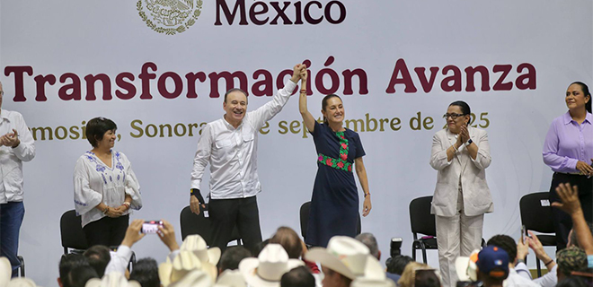 “Hoy México vive estabilidad política, mantiene estabilidad económica y ejerce plenamente las libertades. Por todo ello, asumimos, presidenta, como nuestro deber seguir trabajando con usted en esta hazaña política y social en la que ha convertido su gestión de gobierno, cuidando su legado de humanismo y justicia social, por todo ello Sonora está con usted, Sonora está con la Cuarta Transformación”, aseguró el gobernador Durazo.