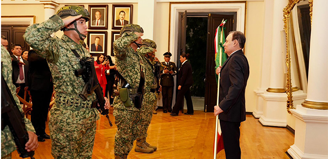 Para iniciar la ceremonia, el jefe del Ejecutivo estatal recibió el lábaro patrio de los elementos del 73 Batallón de Infantería y se trasladó al balcón de Salón Gobernadores para entonar las arengas y evocar el Grito de Independencia al ondear la bandera mexicana.