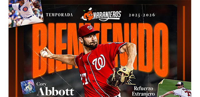 Hermosillo, Sonora; septiembre 4 de 2025 (Prensa Naranjeros). – El Club Naranjeros de Hermosillo anuncia este día la contratación del lanzador Cory Abbott para fortalecer su cuerpo de pitcheo en la temporada 2025-2026 de la Liga ARCO Mexicana del Pacífico.