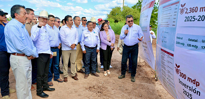 Cabe mencionar que, para la tecnificación integral, los apoyos y la infraestructura en el campo sonorense, en este 2025 se aplica una inversión de 6 mil 500 millones de pesos, y 2 mil 800 millones de pesos adicionales para proyectos hídricos que aseguren el consumo humano del recurso.