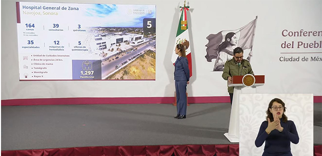 El Hospital General de Zona en Navojoa, cuya construcción comenzó en julio de 2023, tendrá 164 camas, 39 consultorios y 35 especialidades.