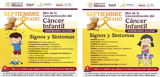 Hermosillo, Sonora; 19 de septiembre de 2025.- El Gobierno de Sonora, a través de la Secretaría de Salud Pública, hace un llamado a la población a estar atenta a los principales signos y síntomas del cáncer infantil, con el propósito de lograr una detección temprana y brindar un tratamiento oportuno que salve vidas.