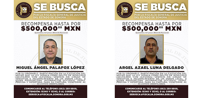 Quienes están siendo buscados por la ley son Miguel Ángel Palafox López y Argel Azael Luna Delgado, mismos quienes pertenecieron a la Agencia Ministerial de Investigación Criminal (AMIC).