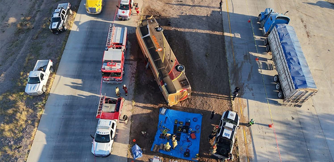 Hermosillo, Sonora; oct. 20 del 2025.- Tras el accidente del pasado viernes en la carretera Hermosillo–Guaymas, donde un autobús de Tufesa se salió de la vía y dejó siete personas fallecidas y 24 lesionadas, la empresa salió a dar su versión y destacó que sus choferes cumplen con los límites de velocidad y que todos los pasajeros cuentan con seguro de viajero.