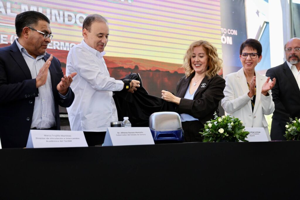 El gobernador Durazo resaltó también el impulso a la Educación Dual, modelo que permitirá a estudiantes del ITH participar directamente en el proceso de manufactura, fortaleciendo sus capacidades en sectores estratégicos como la electromovilidad, los semiconductores y las energías renovables. En presencia de las autoridades académicas y directivos empresariales, develó un modelo a escala del proyecto y realizó un recorrido por las instalaciones.