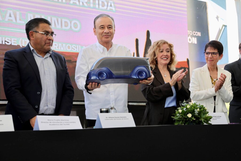 – Durazo Montaño reafirmó su compromiso con la formación de talento sonorense, al destacar la implementación del modelo de Educación Dual que permitirá a estudiantes del Instituto Tecnológico de Hermosillo (ITH) participar en el proceso de manufactura del vehículo, fortaleciendo sus capacidades en sectores estratégicos como la electromovilidad, los semiconductores y las energías renovables.