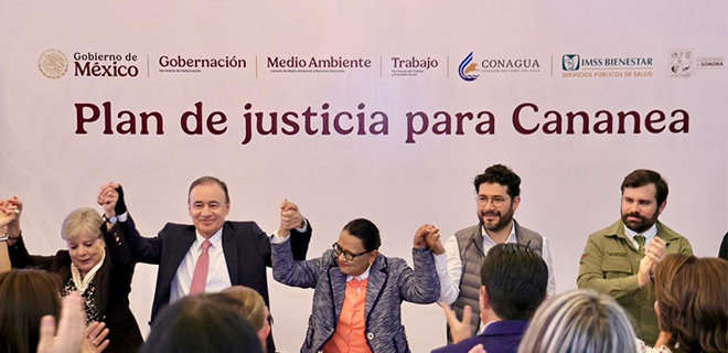 Enero 2 de 2026.- Gracias a la voluntad política del Gobierno de México, encabezado por la presidenta Claudia Sheinbaum Pardo, y del Gobierno de Sonora, se concretaron los Planes de Justicia que permiten saldar una deuda histórica mediante una inversión de 2 mil 222 millones de pesos, destinados a atender de manera integral los efectos del derrame en el Río Sonora y a resolver el conflicto laboral de la mina de Cananea, que permanecía sin solución desde hace casi dos décadas.