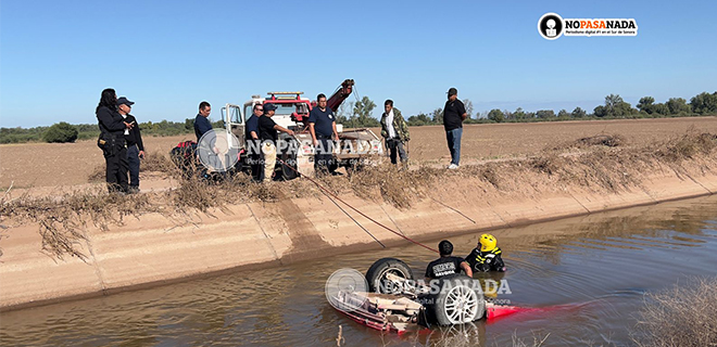 Un sedán Focus se precipitó al Canal de El Recodo, a 500 metros de la carretera San Ignacio a Chucárit.