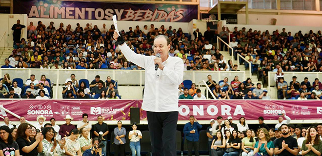 – El mandatario estatal anunció la convocatoria de Becas Sonora Internacional para que jóvenes sonorenses se profesionalicen en el extranjero, misma que estará abierta del 9 al 23 de marzo, y contempla un respaldo económico por estudiante de 200 mil pesos.