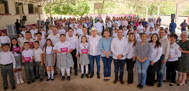 San Pedro de la Cueva, Sonora; 9 de abril de 2026.- Desde el inicio de su administración y en cumplimiento a una promesa de campaña, el Alfonso Durazo Montaño implementó el programa de becas “Sonora de Oportunidades”, el más grande en la historia de la entidad, logrando disminuir la deserción escolar en un 13 por ciento, lo que ha permitido que niñas, niños, y jóvenes sonorenses sigan adelante con sus estudios.